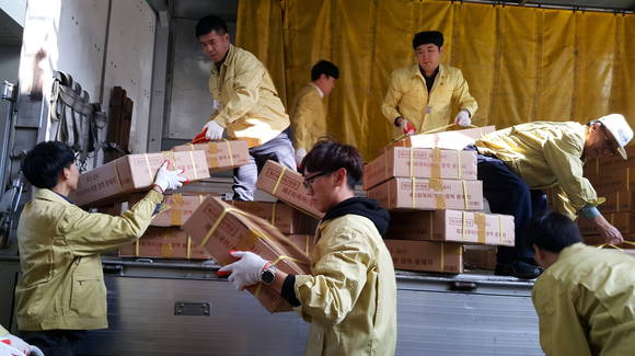 한산면 한울타리후원회, 충남디자인예술고에 수능 찹쌀떡 전달