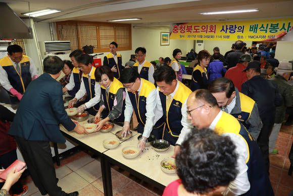 충북도의회 의장·의원, 청주 YMCA서 무료 배식봉사