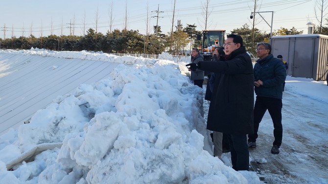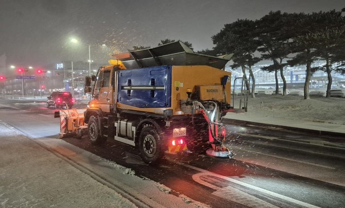 충북도, 청주국제공항 진입도로 제설작업 지원
