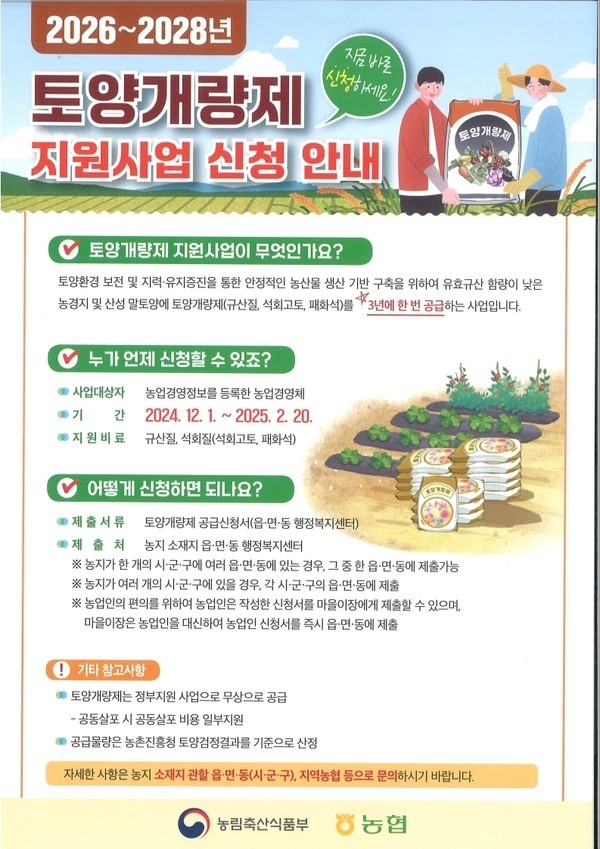 제천시, 2026∼2028년 토양개량제 지원사업 신청 시작