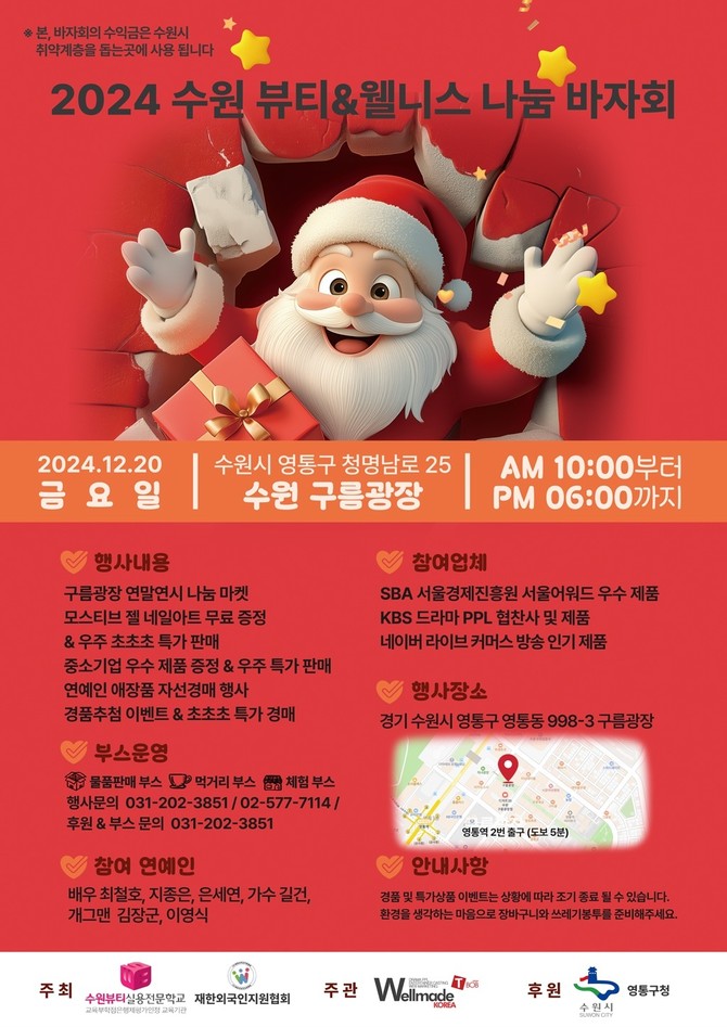 '2024 수원 뷰티&웰니스 나눔 바자회' 오는 12월20일 개최