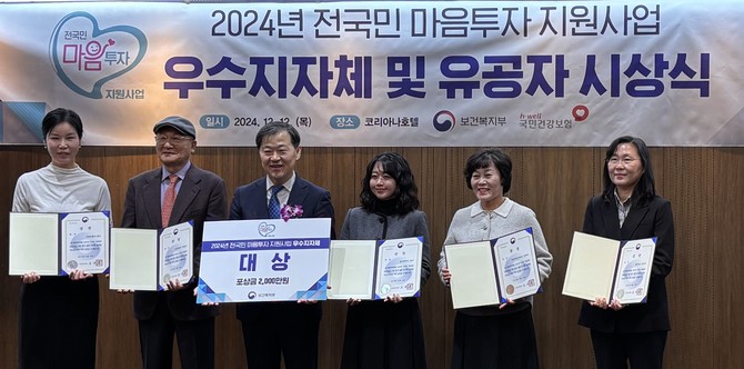 당진시 '전국민 마음투자 지원사업' 마음건강 돌봄 서비스 우수 지자체 대상 수상
