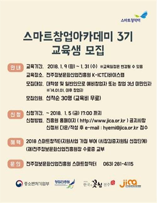 전주시, 스마트창업아카데미 3기 교육생 모집