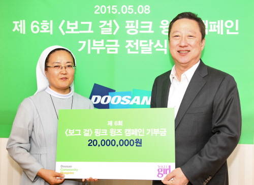 두산매거진, 미혼모자시설 '마음자리' 자립 지원기금 전달