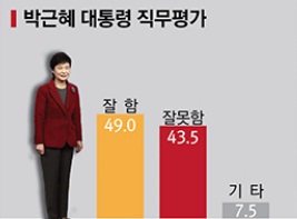 朴 대통령 직무평가, '잘함' 49.0% vs '잘못함' 43.5%