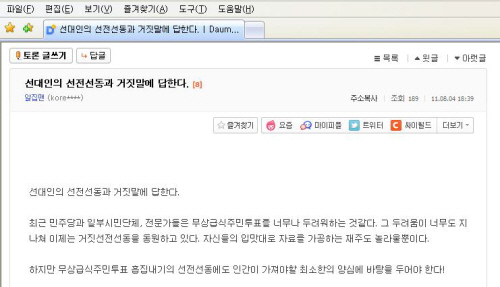 선대인의 오세훈 흠집내기…‘아고라’서 논쟁 중