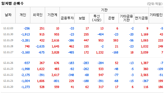 美 재정절벽 우려에 발목 잡힌 코스피 '대형주 올킬'