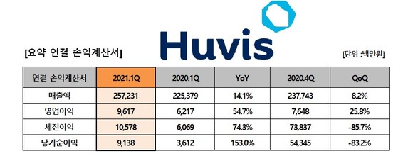 휴비스, 자동차·필터용 소재 인기…영업익 55% 증가