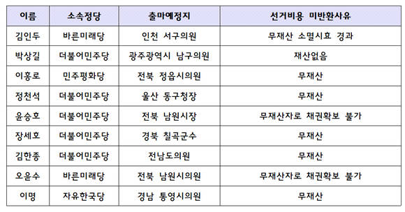 '선거비용 먹튀' 9명 지방선거 또 나온다