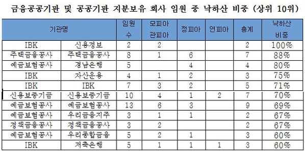 [2014 국감] "낙하산 많은 금융기관 10곳 중 4곳은 IBK계열사"