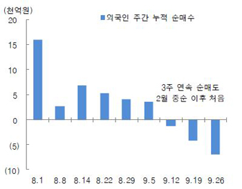 코스피 外人 6거래일째 '팔자'…하루 만에 반락