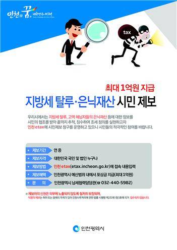 인천시, 체납자 은닉재산 제보하면 최대 1억 포상