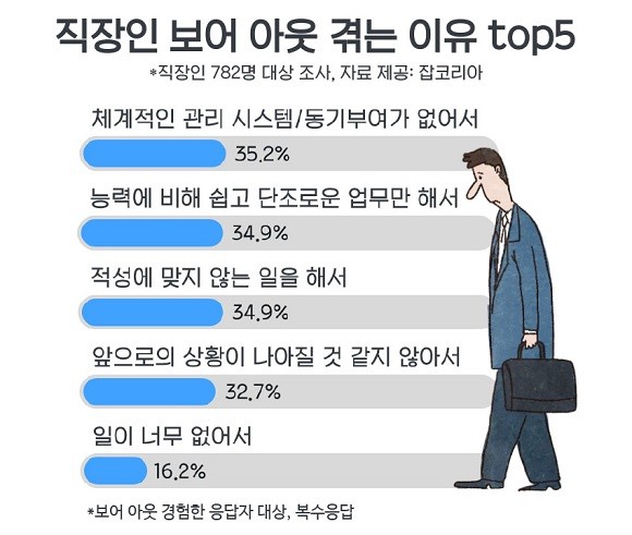 "재미없고 지루해요" 직장인 5명 중 2명 '보어 아웃' 경험