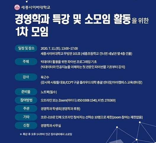 세종사이버대학교 경영학과, '파이선 프로그래밍 기초' 특강 개최