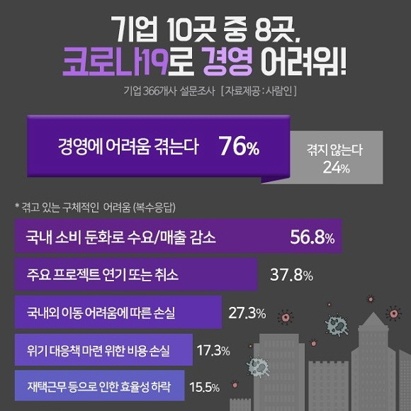 '코로나 쇼크' 기업 10곳 중 8곳 "경영 어려워"