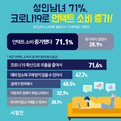 성인남녀 71%, 코로나19로 '언택트 소비' 증가