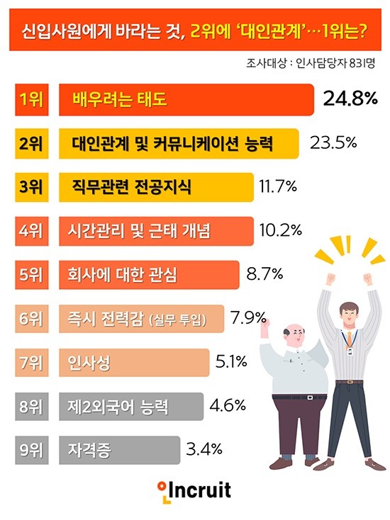 신입사원에게 바라는 것 1위는 "배우려는 태도"