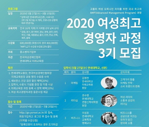 여성경제인 협회, 2020 여성 최고경영자과정 수강생 모집