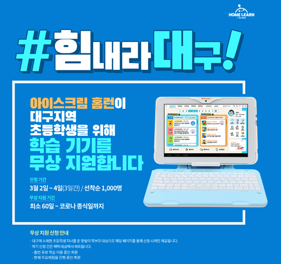 아이스크림에듀, 대구 초등생에 아이스크림 홈런 1000대 무상 지원