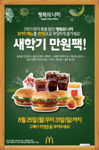 맥도날드 '행복의 나라 새학기 만원팩' 한정 출시