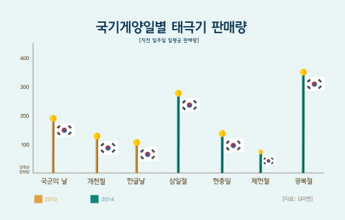 G마켓, 국경일별 태극기 판매량 조사… 올 들어 판매량 8배 늘어