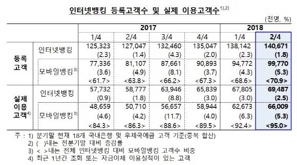 모바일뱅킹 증가…인터넷뱅킹 실이용자 95% 넘었다