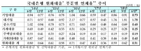 6월 은행 원화대출 0.51%…전월比 0.11% 하락