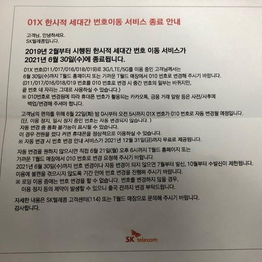 SK텔레콤, 01X 번호 종료…'010 번호통합정책' 반발 여전