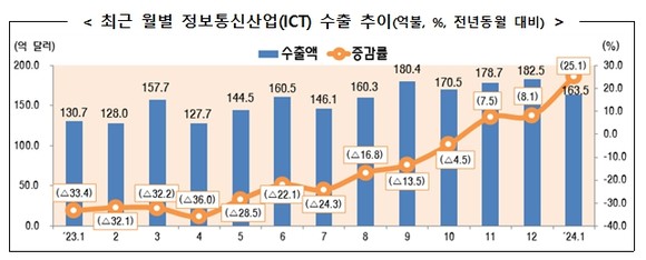 1월 ICT 수출액 25% 증가…무역수지 45억달러 흑자