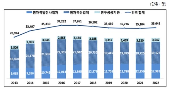 재작년 원자력 산업 종사자 3만5649명…5년 만에 증가세 전환