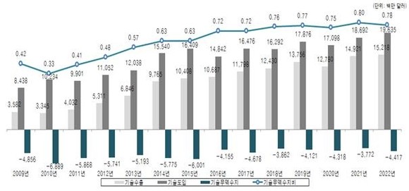 재작년 기술 무역 규모 '역대 최대'…수출 152억·도입 196억달러