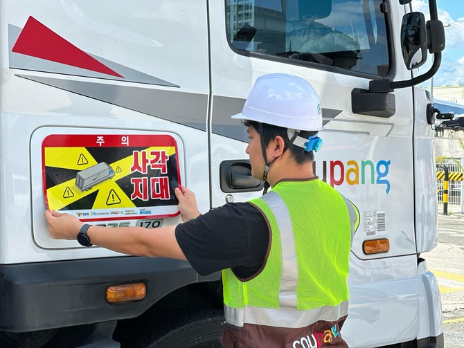 쿠팡, 교통안전 캠페인…화물차 '사각지대 주의' 표지 부착