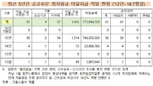공공·지자체 60여곳, 최저임금 미달금액 7억7000만