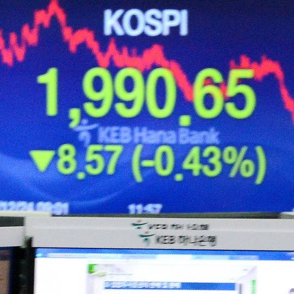 개인 '팔자' 행진에 코스피 1990선 턱걸이