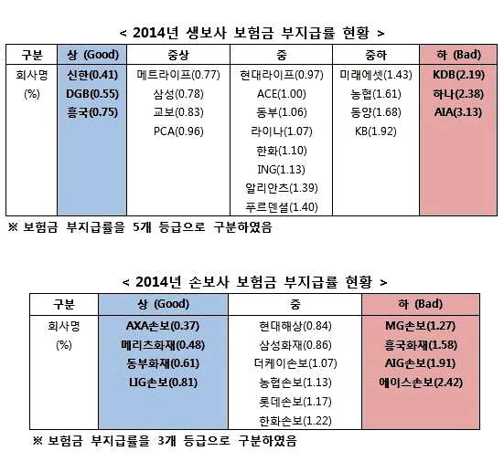 AIA생명·에이스손보 '보험금 부지급률' 높아