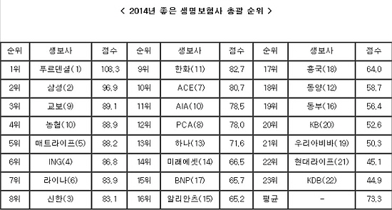 '2014 좋은 생명보험사 평가' 푸르덴셜 1위