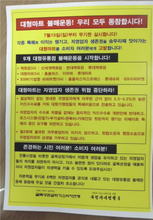 600만 자영업자, 15일부터 대형마트 불매운동 돌입