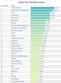 "세계 R&D 투자 100대 기업에 韓 4곳 선정"