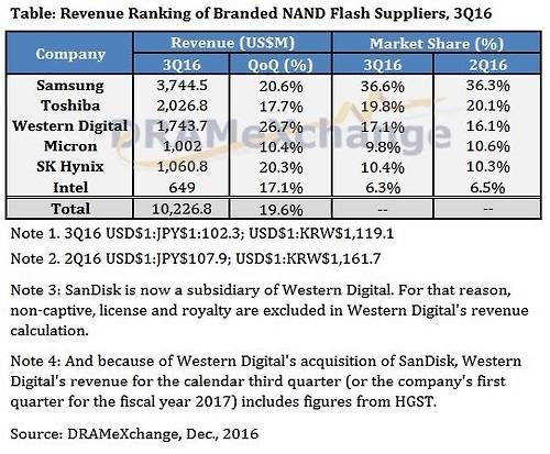 삼성전자, 낸드플래시 독주…2위와 16.8%p 격차 벌려