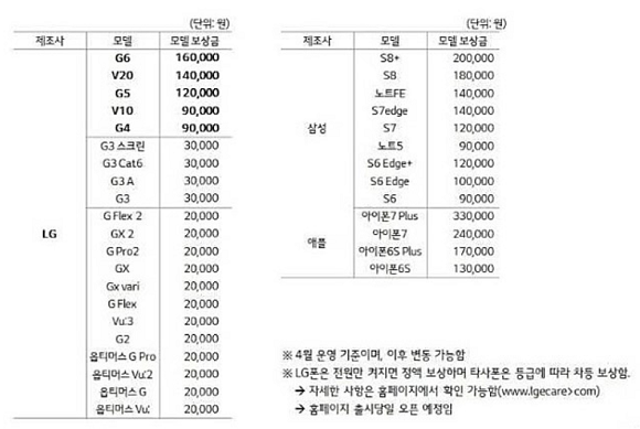 "아이폰7+ 33만원·G6 16만원"…LG전자 'V50 안심보상가' 확정