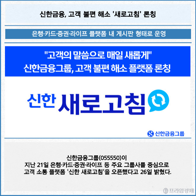[카드] 신한금융, 고객 불편 해소 '새로고침' 론칭