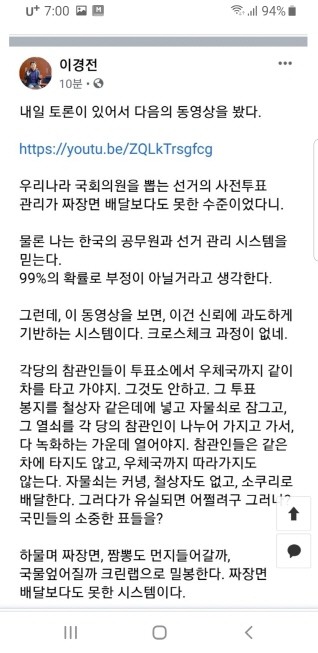 이경전 교수 "선거 관리, 짜장면 배달만도 못한 시스템"