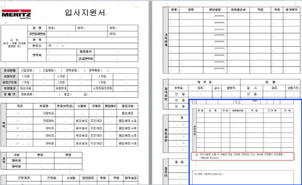 "주요기관 근무 인사를 써내라?" 메리츠증권 지원서 해프닝
