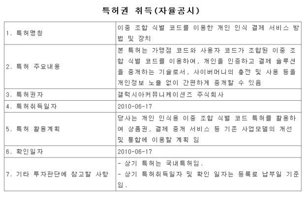 갤럭시아커뮤니케이션즈, 특허취득공시