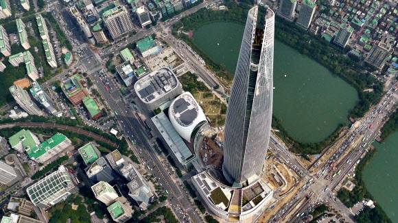 롯데월드타워 외관 공사 마무리…유리창 4만2000여장 사용