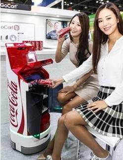 로보월드 행사장에서 로봇이 배달하는 코카콜라 맛 보세요