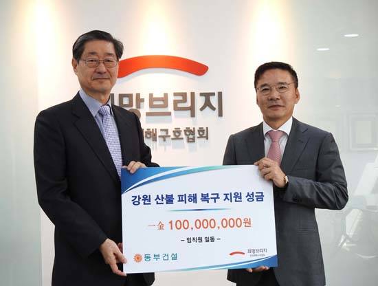 동부건설, 강원도 산불 피해 지역 복구 위한 성금 1억 전달