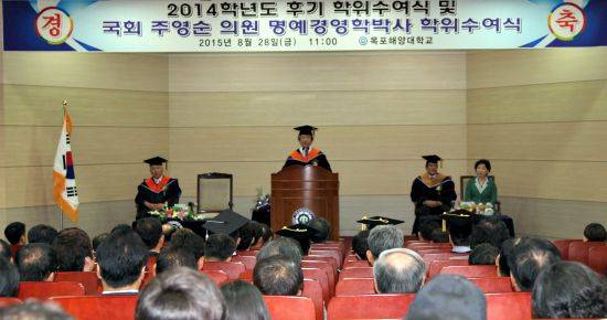목포해양대학교 28일 학위수여식 거행… 주영순 의원 명예박사