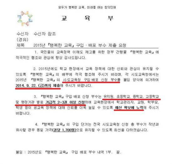 교육부 기관지 '행복한 교육' 시도교육청에 강매