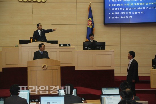 안주용 전남도의원 박준영 도지사에 물세례 왜?